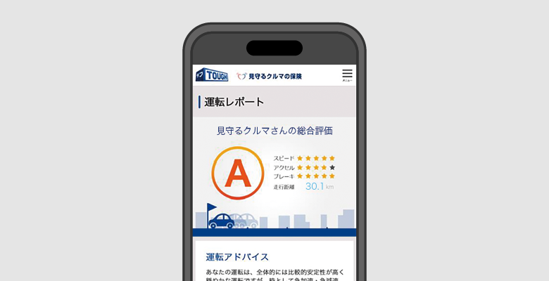 走行の安全運転度合を表す安全運転スコアや安全運転につながるアドバイスや、走行ルート上に危険な運転を検知した地点を示したマップ等をご覧いただけます。