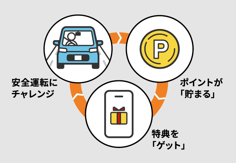 安全運転につながる取組みにチャレンジすることでポイントが貯まる「ADテレマイレージ」もご用意。ポイントに応じて特典をゲットできるので、楽しみながら安全運転に取組むことができます。