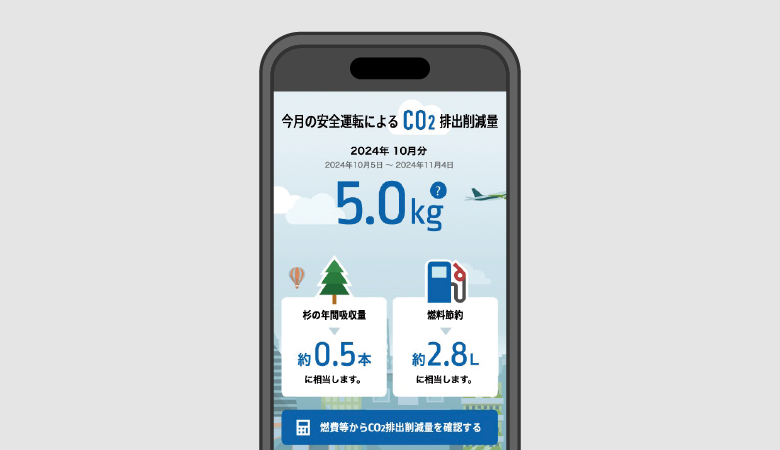 お客さまの安全運転よって削減されたCO2排出量がアプリ上で確認できます。