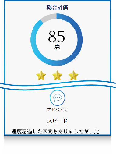 1回の運転ごとの車両運行情報に基づいたスコアを100点満点で表示します。