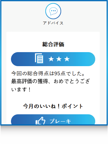 1か月の車両運行情報から導かれた詳細なアドバイスをお届けします。アドバイスは運転する時間帯や道路の種類など、ご契約のお車ごとの運転傾向に合わせて作成されます。