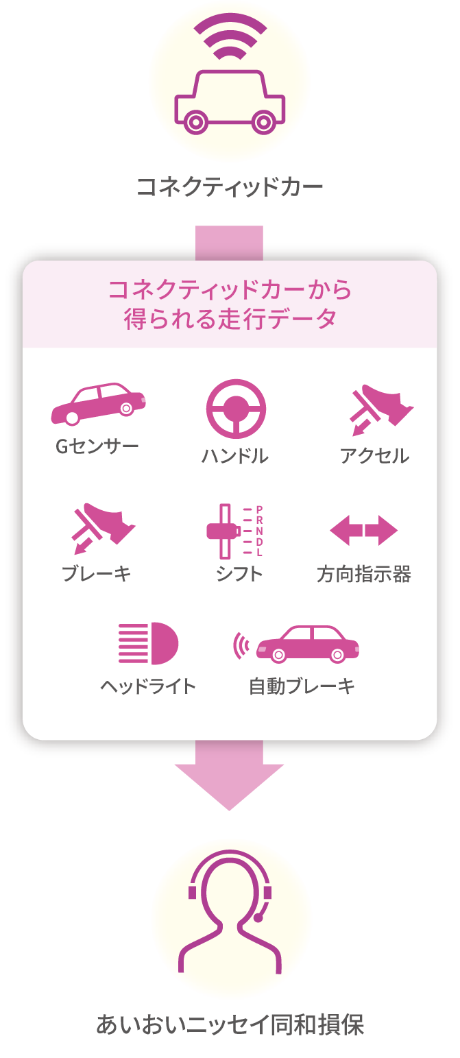 相手のある事故では、事故状況に対して双方で意見が食い違うことがあります。「コネクティッドカーから得られる走行データ」があれば、お客さまがご説明する負担が軽減されるとともに、解決に向けて客観的な事実に基づく示談交渉(注)が可能となります。