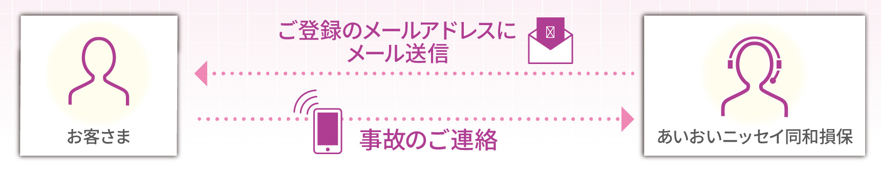 「安否確認コール」を希望されなかったお客さまには、あいおいニッセイ同和損保より緊急時連絡先をメールでご連絡します。