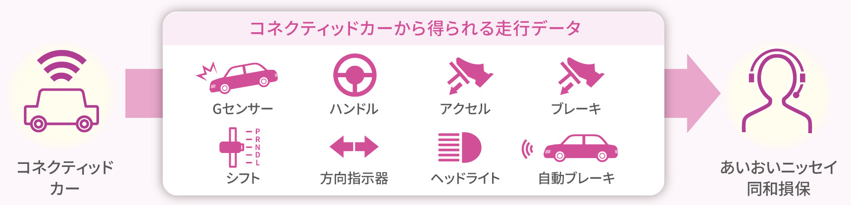 相手のある事故では、事故状況に対して双方で意見が食い違うことがあります。「コネクティッドカーから得られる走行データ」があれば、お客さまがご説明する負担が軽減されるとともに、解決に向けて客観的な事実に基づく示談交渉(注)が可能となります。